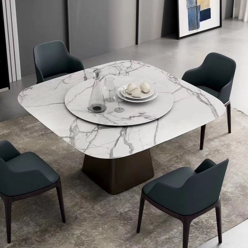 कुर्सी के साथ आधुनिक सिरेमिक संगमरमर शीर्ष डाइनिंग टेबल, संगमरमर डाइनिंग टेबल फोशान निर्माता |